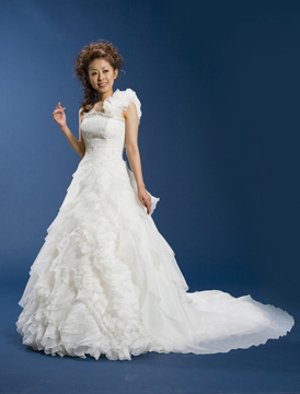 新素材のガーゼオーガンをふんだんに用いたティアードフリルワンピースです。ウエストサッシュで引き締められたトップとビックプリンセスラインでメリハリボティラインを造ります。フリルワンショルダーは取り外し可能です。