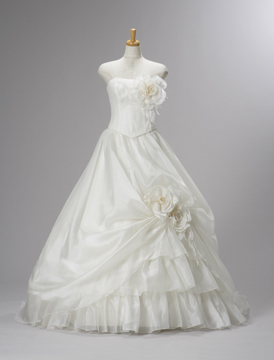 ヨーロッパの貴婦人を思わせる大輪のフラワーコサージュを配したロマンティックなドレス。シンプルに仕上げたフェミニンドレスは大人の女性が着こなす事で表情が変わります。